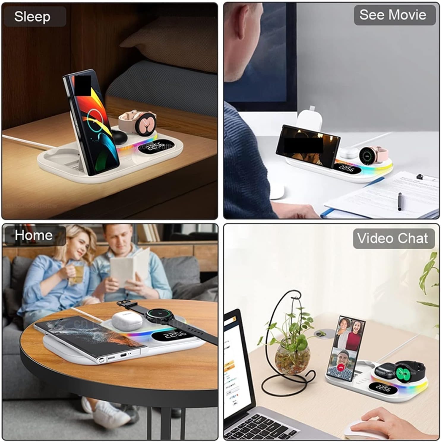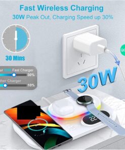 - 4-in-1 Wireless Charger Stand: Charge up to four devices simultaneously with this versatile wireless charger stand, making it perfect for families or individuals with multiple devices.