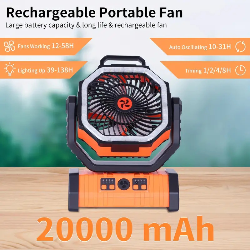 - A massive 20000mAh rechargeable battery, the fan is equipped with a powerful lithium battery that lasts long and fully charges in 8 to 9 hours via the included Type-C cable.