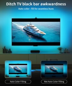 • Quick Installation Ease – Set up your TV sync LED lights with ease. Simply fix the camera in the center position on the top of the TV. The TV led lights, designed for 55-65 inch TVs (perfect suitable for 16:9 widescreen TVs) , attaches securely to all four sides of the TV’s back using clips and adhesives