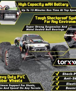 - The Truck with a Need for Speed: This isn’t your normal RC car. Its brushed motor offers huge power and torque that will leave your rivals in your dust. With its 1600mAh LiPo battery, you’ll be able to lay down that power for up to 15 minutes!